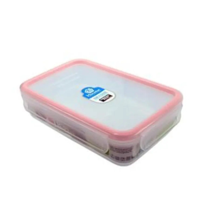 ظرف فریزری مستطیل هوم کت، از جنس پلاستیک، دارای گنجایش 830 میلی لیتر می باشد. وجود قفل کلیپسی و نوار سیلیکونی در چهار طرف درب این ظروف مانع از ورود هوا و ریختن مواد غذایی می شود. این محصول قابل استفاده در مایکروویو و فریزر می باشد.