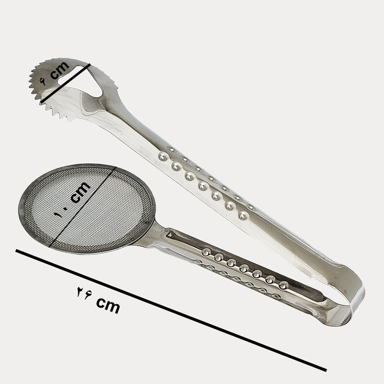 طول انبر ۲۶ سانتی متر قسمت توری دایره ای به قطر ۱۰ سانتی متر