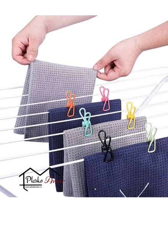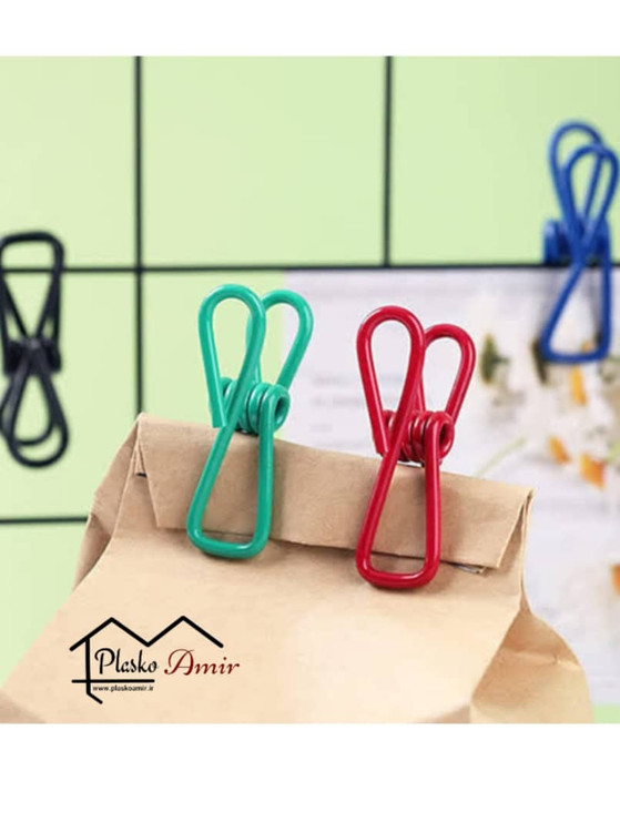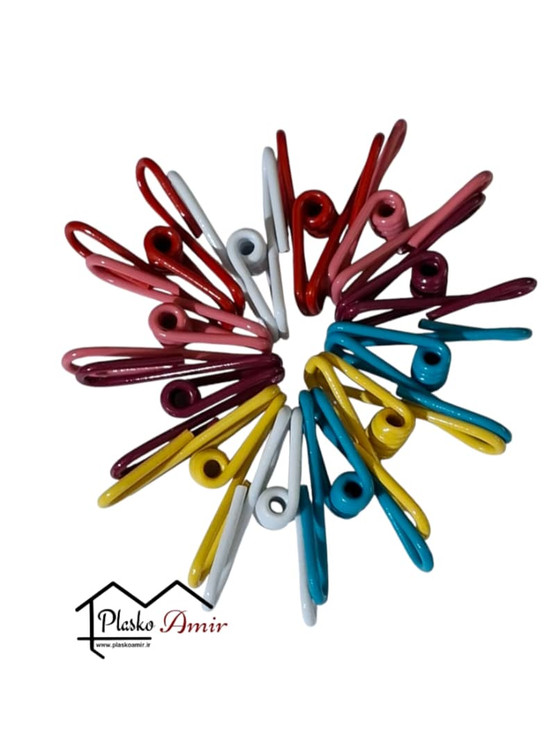 گیره لباس رنگی خارجی فلزی روکش دار بسته 12 عددی