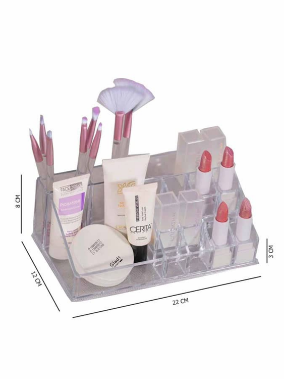 طول این نظم دهنده اکرولیک لوازم آرایشی 22 سانتی متر و عرض آن 13 سانتی متر است