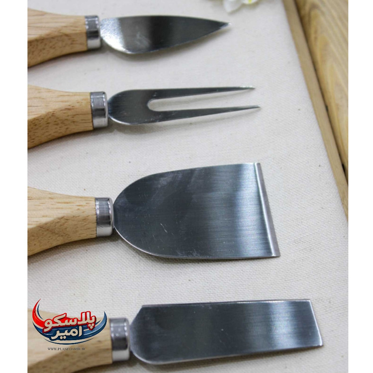 شامل چنگال سرو، اسلایسر پنیر و دو نوع کارد برای برش پنیر سخت و پنیر نرم می باشد. چاقوی پهن این سرویس برای برش پنیر نرم طراحی شده است و چاقوی پنیر سخت برای برش پنیر های سفت و مدل چاقوی پخش کننده برای زمانی است که بخواهید چیزی را بر روی نان تست خود پهن کنید. در انتها چاقوی دیگری که وجود دارد چاقوی سرو نام دارد که با استفاده از آن می توانید به راحتی پنیر و سایر مواد را بردارید.