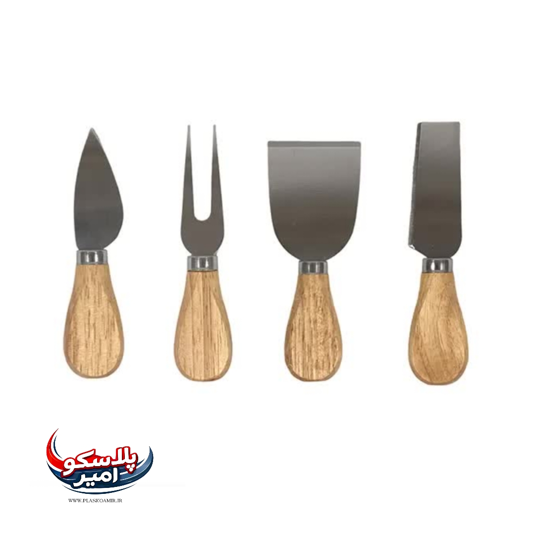 شامل چنگال سرو، اسلایسر پنیر و دو نوع کارد برای برش پنیر سخت و پنیر نرم می باشد. چاقوی پهن این سرویس برای برش پنیر نرم طراحی شده است و چاقوی پنیر سخت برای برش پنیر های سفت و مدل چاقوی پخش کننده برای زمانی است که بخواهید چیزی را بر روی نان تست خود پهن کنید. در انتها چاقوی دیگری که وجود دارد چاقوی سرو نام دارد که با استفاده از آن می توانید به راحتی پنیر و سایر مواد را بردارید.