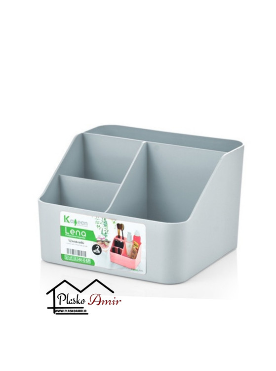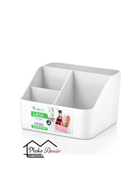 نظم دهنده رومیزی لنا LENA جنس پلاستیکی ابعاد : 14×17×11 سانتی متر محصولی از تولیدی کاجین کاربردی همه کاره مناسب استفاده روی میز آرایش، داخل حمام و سرویس بهداشتی و میز کار برای نظم دهی به لوازم