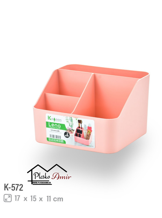 - بهترین انتخاب از ارگانایزر ها و نظم دهنده های آشپزخانه و اتاق خواب ، نظم دهنده رومیزی لنا با جنس فوق العاده با کیفیت و محکم پلاستیکی می باشد که دارای 4 پارت مختلف مناسب نظم دهی به انواع لوازم مانند خودکار ، مداد، مسواک، شانه سر و انواع کرم ، برس و خمیر دندان، خوشبو کننده و حتی لوازم التحریر هست.