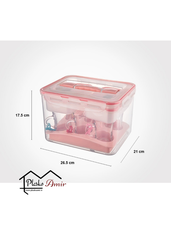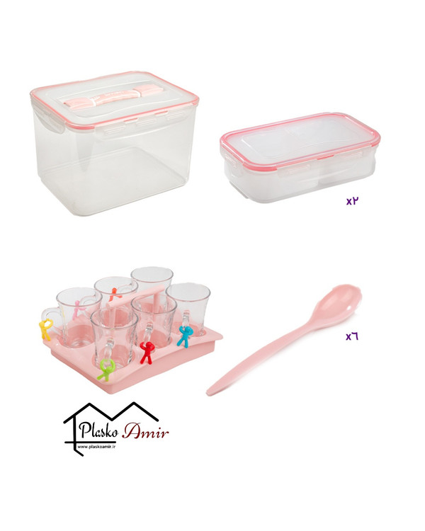 6 عدد فنجان با کیفیت ضد شوک 6 عدد نشان فنجان (اختصاصی افراد) 6 عدد قاشق چایخوری 2 عدد ظرف غذا 2 قسمتی جهت نگهداری قند و چای بیسکوییت 1 عدد سینی مخصوص 1 عدد باکس نگهدارنده